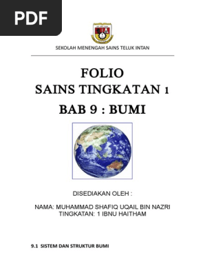 Nota sains tingkatan 3 kssm smk tun saban modul. Folio Sains Tingkatan 1. Sistem dan struktur Bumi 2.